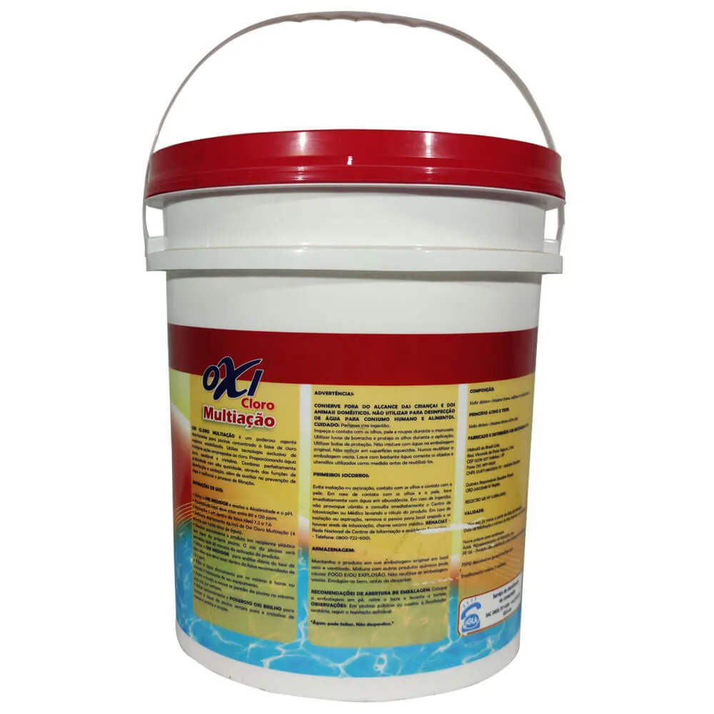 Oxi Cloro Multiação é um poderoso agente desinfetante para piscinas concentrado á base de Dicloro orgânico estabilizado.